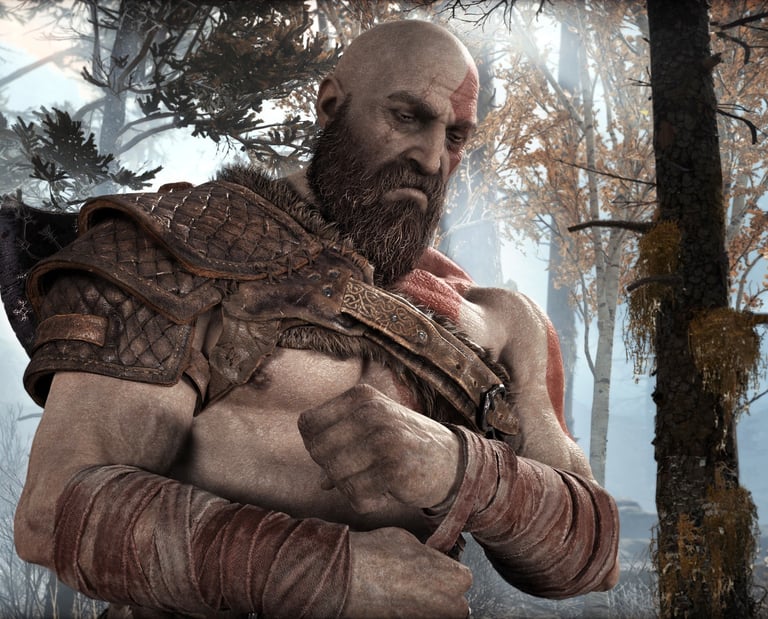 Kratos mais velho, introspectivo e cheio de carga emocional