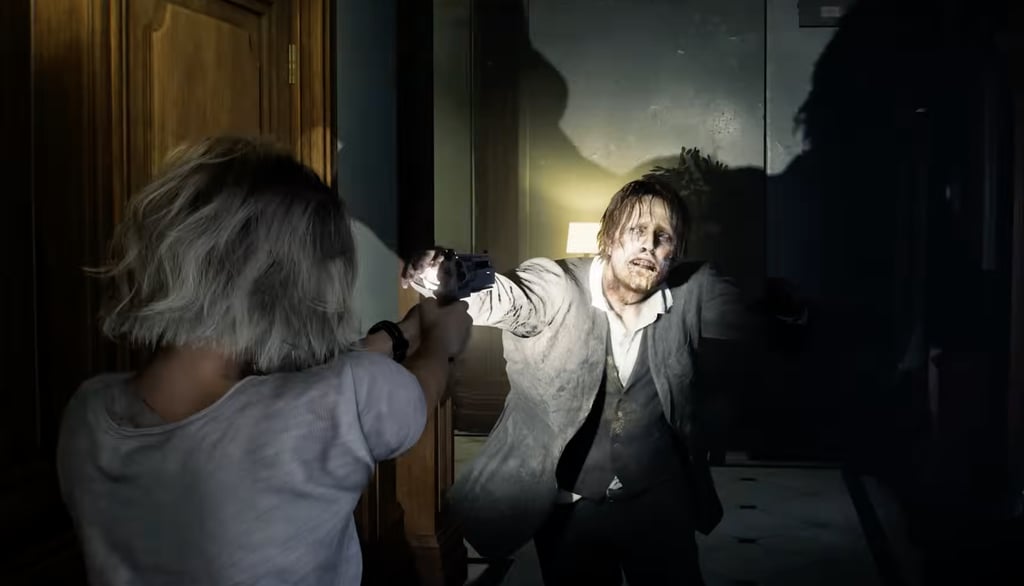 O trecho mostrou Grace enfrentando um zumbi de forma bem direta, mas o combate parece mais cadenciado, com movimentos calculados e menos foco em ação frenética.
