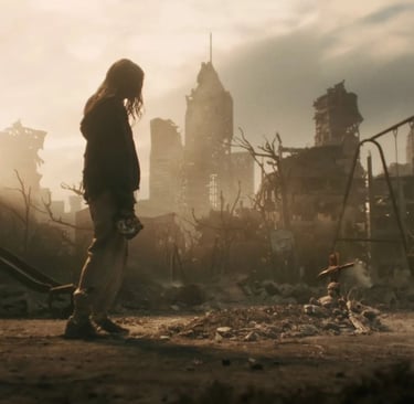 A estrela do curta é a atriz Maika Monroe (It Follows, Longlegs), que comentou que gravar no meio de figurantes zumbificados e cenários destruídos foi tenso até pra quem já manja de filme de terror.